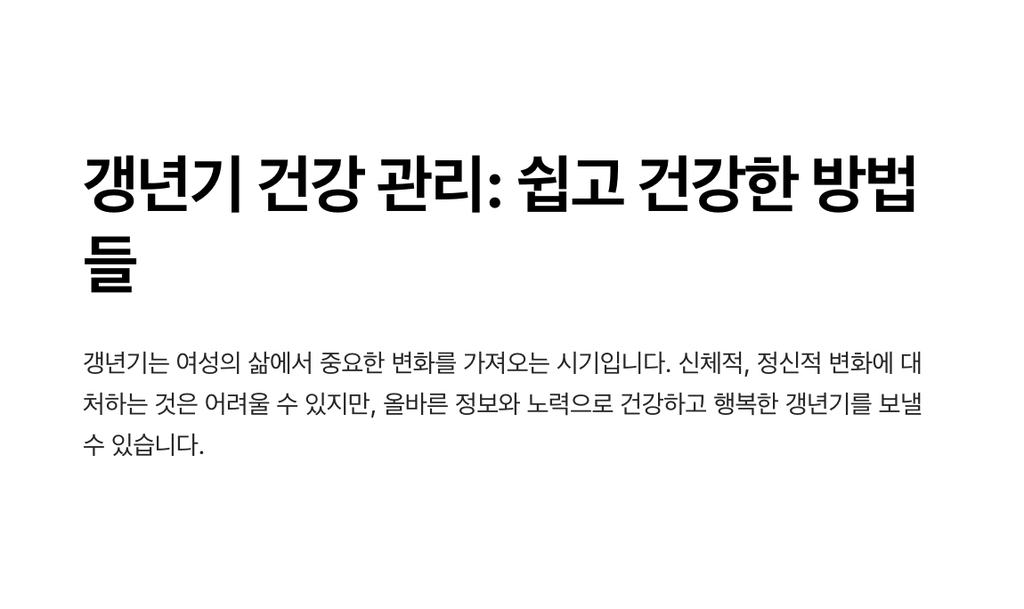 - 전문가 상담: 심각한 갱년기 증상이 있다면 의사와 상담하여 맞춤형 해결책을 찾으세요.