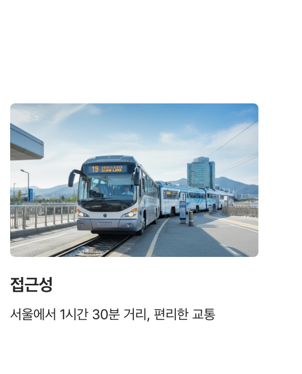 - 서울에서 가까워 당일치기나 주말 여행으로 적합.
