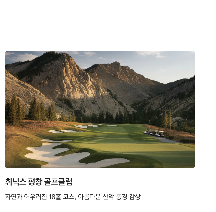 - 소개: 강원도 평창의 복합 레저 리조트로, 골프 외에도 스키, 워터파크 등 다양한 레저 활동이 가능합니다.