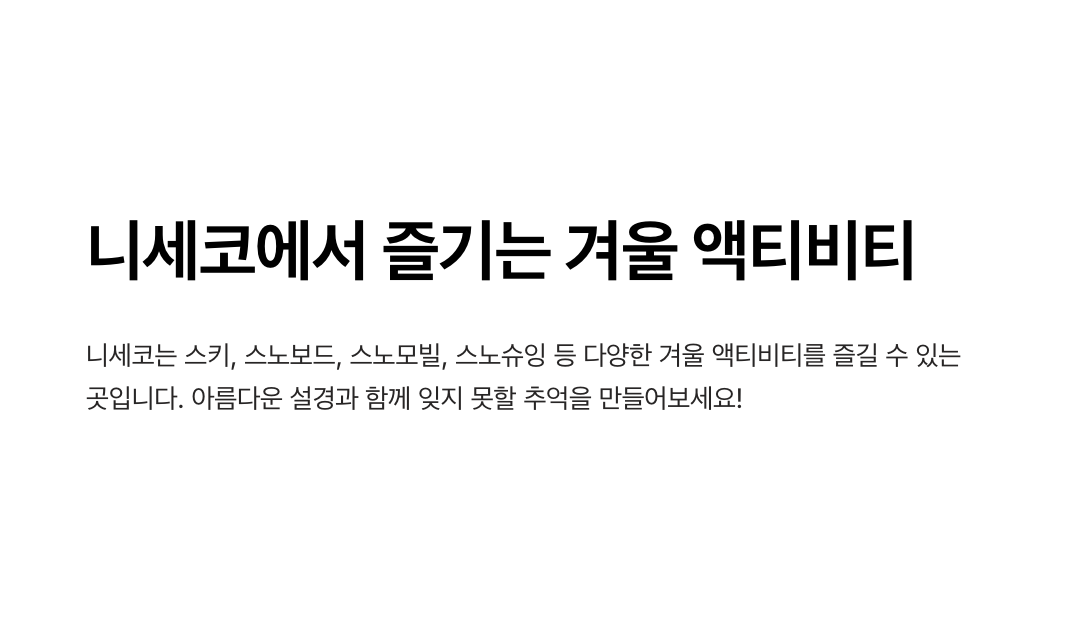 - 소개: 홋카이도의 니세코를 포함한 겨울 액티비티(스노모빌, 스노슈잉, 온천 등)에 대한 자세한 정보를 제공합니다. 가족 단위 여행객과 액티비티 초보자에게 유용한 추천 가이드입니다.