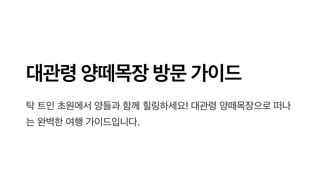| 1. 대관령 양떼목장 공식 홈페이지 | 대관령 양떼목장의 운영 시간, 입장료, 먹이 체험 프로그램 등 최신 정보를 제공하는 공식 사이트로 방문 전에 반드시 확인하는 것을 추천합니다. |