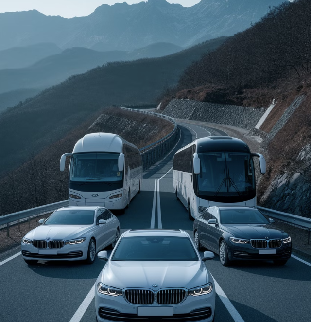 자가용은 가족 단위 여행자나 짐이 많은 경우 가장 편리한 이동 수단으로, 다양한 경로를 선택할 수 있습니다.