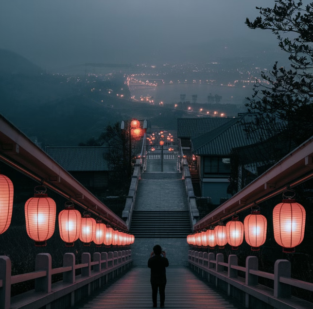 - A5. 골목 계단 중간에서 바라본 홍등 풍경과 마을 상단의 전망대가 야경을 감상하기에 가장 좋은 장소로 꼽힙니다. 특히 저녁 시간이 절정입니다.