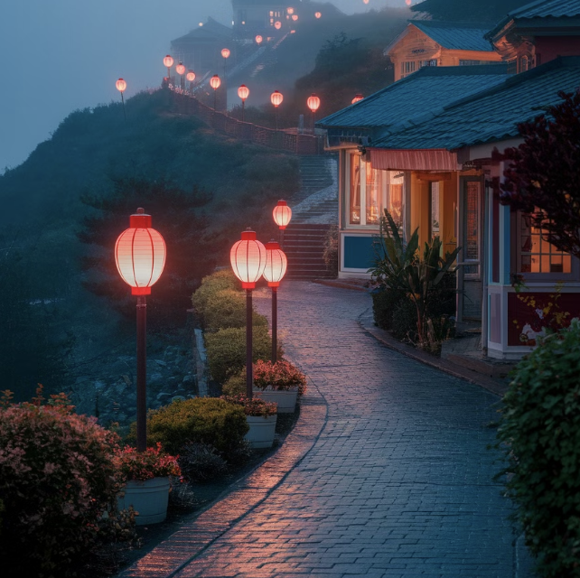 - 저녁이 되면 골목길에 홍등이 켜져 몽환적인 분위기를 자아냅니다.