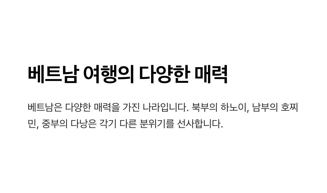 베트남은 문화와 자연, 도시와 휴양이 조화를 이루는 매력적인 여행지입니다. 하노이의 역사와 전통, 다낭의 힐링 비치, 호찌민의 현대적인 에너지는 어떤 여행 스타일에도 잘 어울립니다.