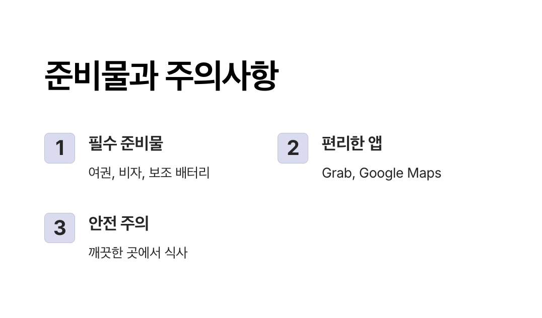 - 그랩(Grab): 단거리 약 1,000~3,000원.