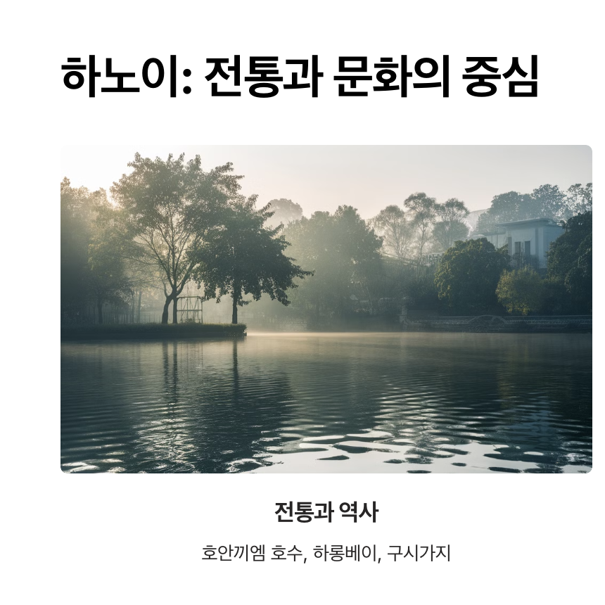 하노이는 베트남의 수도로, 전통과 현대가 공존하는 도시입니다. 고풍스러운 건축물과 풍부한 문화유산이 특징입니다.