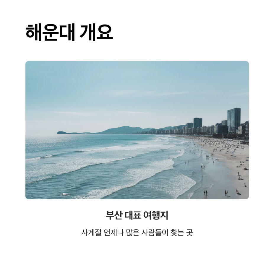| 2. 부산 해운대 해수욕장 정보 | 해운대 해수욕장의 개장 시기, 편의시설, 주차장 정보 등 실시간으로 업데이트된 정보를 제공합니다. |
