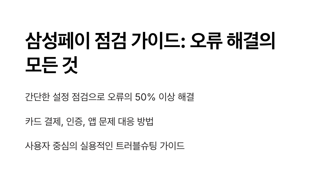 삼성페이를 사용하는 사용자들이 실제로 가장 많이 겪는 오류 5가지를 소개합니다. 각각의 증상과 원인, 그리고 스스로 해결할 수 있는 방법을 단계별로 정리했으니, 아래 항목을 체크하며 따라 해보세요.