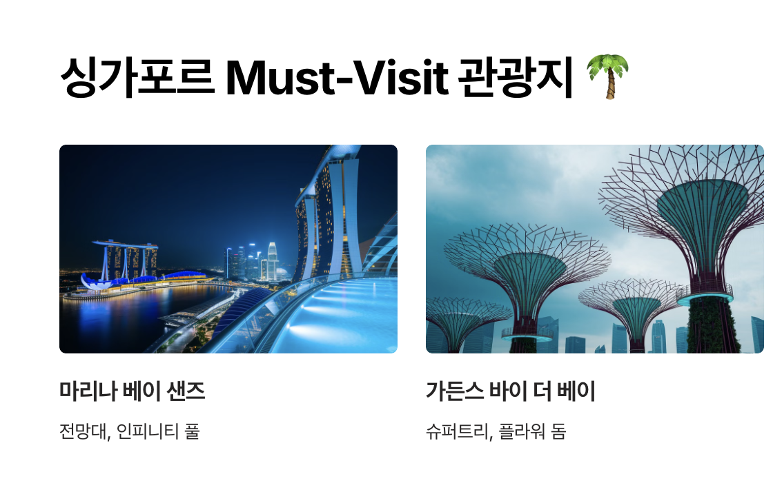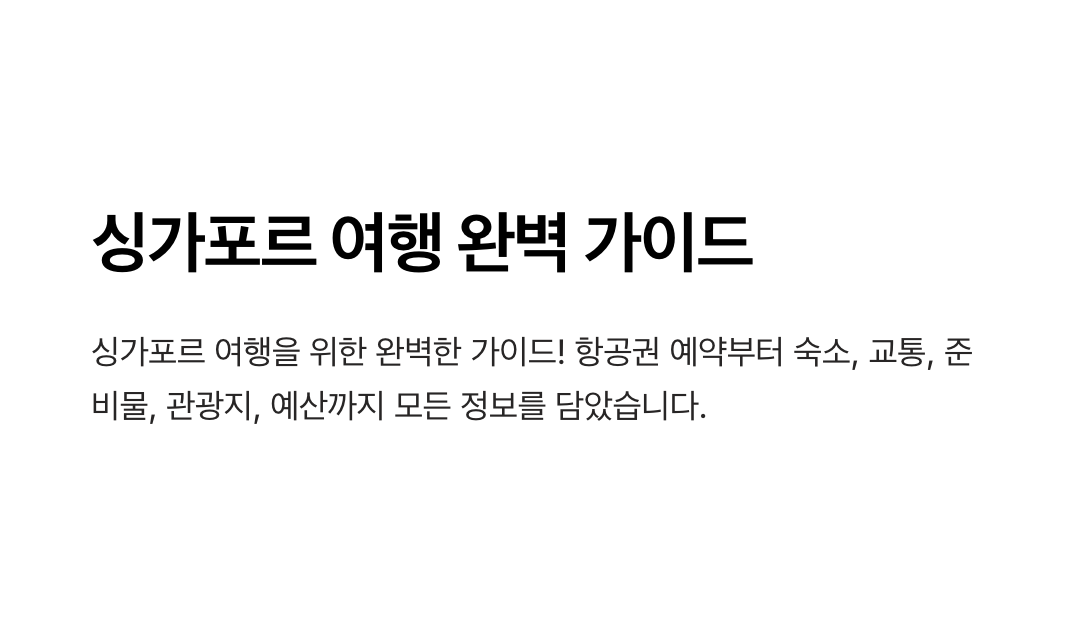 위의 정보를 바탕으로 철저한 계획을 세우면, 만족스럽고 알찬 싱가포르 여행이 될 것입니다!