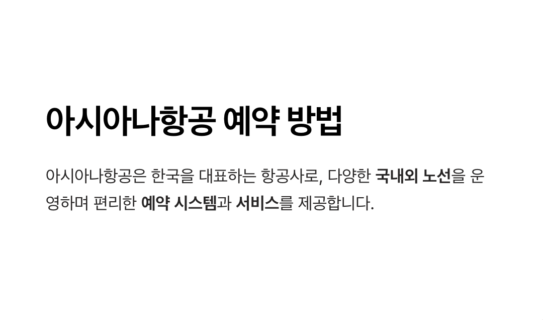 아시아나항공은 한국을 대표하는 항공사로, 다양한 국내외 노선을 운영하며 편리한 예약 시스템과 서비스를 제공합니다. 특히 초보자도 쉽게 사용할 수 있는 공식 웹사이트와 모바일 앱은 많은 고객들에게 사랑받고 있습니다.