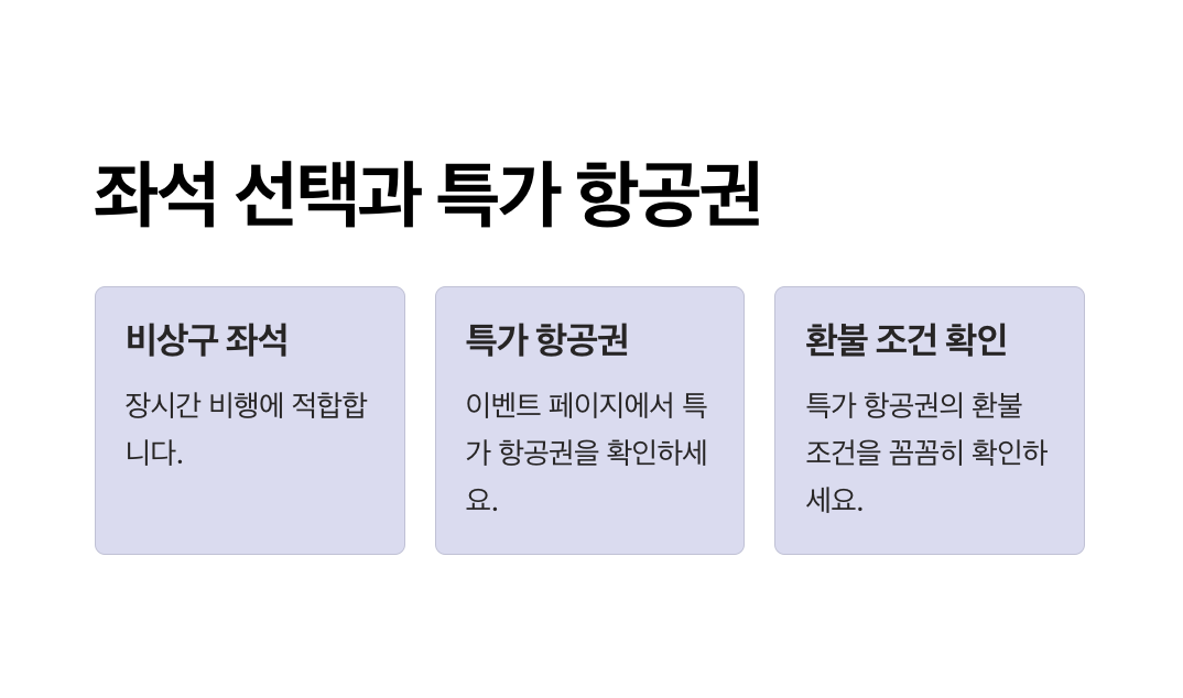 - 비상구 좌석: 다리를 뻗을 수 있어 긴 비행에 적합합니다.