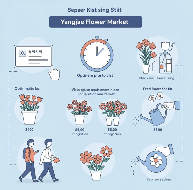 - 최적 방문 시간: 오전 7~9시 (가장 신선한 꽃 입고)