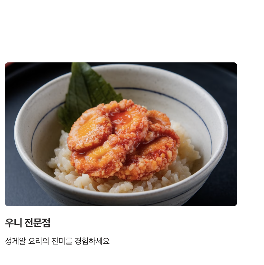 - 특화 메뉴: 신선한 우니(성게알)를 듬뿍 얹은 덮밥.