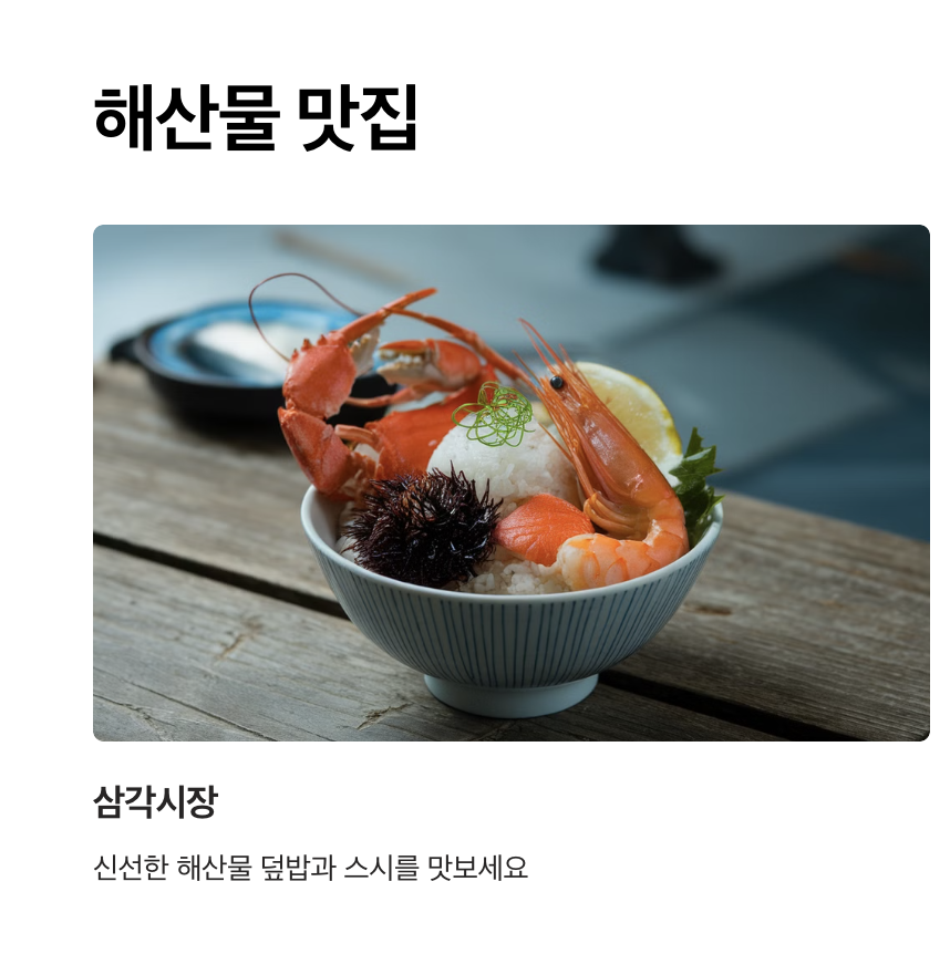 - A4. 삼각시장은 아침 일찍 문을 열며, 오전 8시~10시 사이가 가장 신선한 해산물을 만날 수 있는 시간입니다. 이른 시간에 방문하면 활어회나 해산물 덮밥을 가장 신선한 상태로 즐길 수 있습니다.