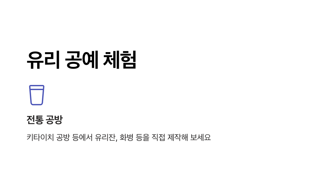 - 전통 유리 공예 기법과 현대적인 디자인이 결합된 독특한 작품 제작 체험이 가능합니다.