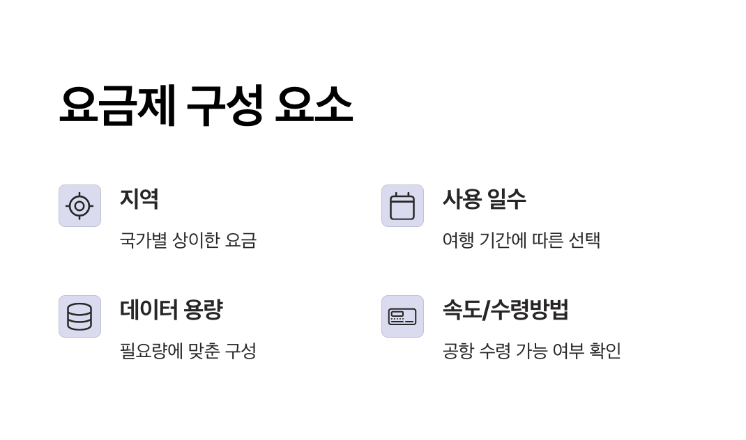 | 사용 일수 | 1일 단위 과금 | 장기 여행 시 묶음 할인 여부 확인 |