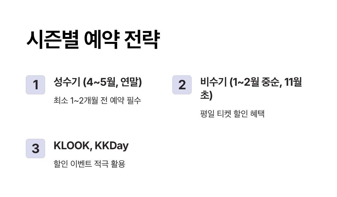 2. 시즌별 입장권 예약 필수 시기 및 할인 정보
