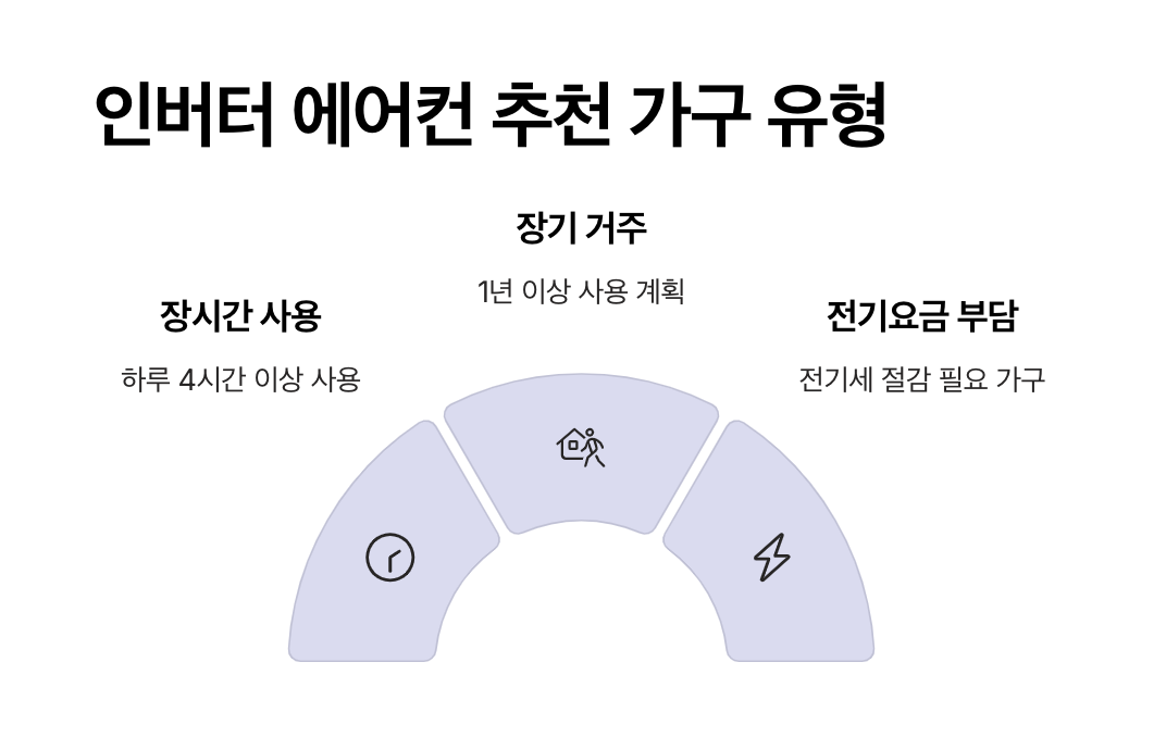 - 누진제 구간 진입이 잦거나 냉·난방을 동시에 많이 쓰는 가구는, 인버터 모델로 전력 소비 안정화를 통해 요금 폭탄을 줄일 수 있습니다.