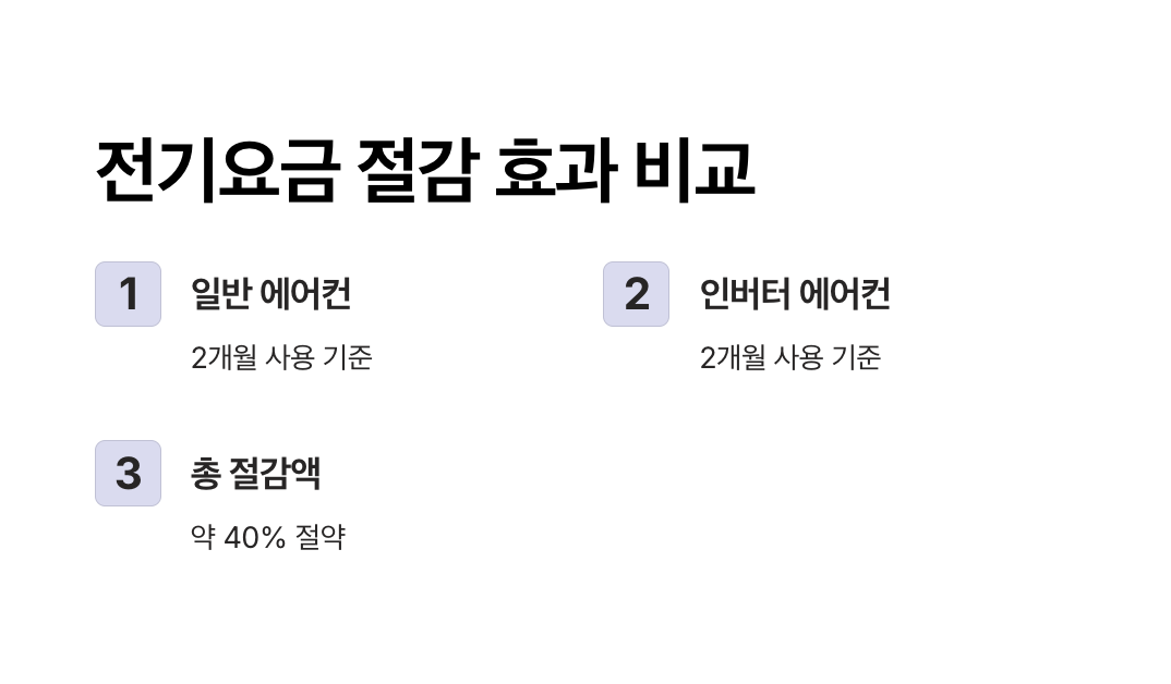 - 전기요금 절감액: 약 40% 절감, 월평균 약 21,600원 절약
