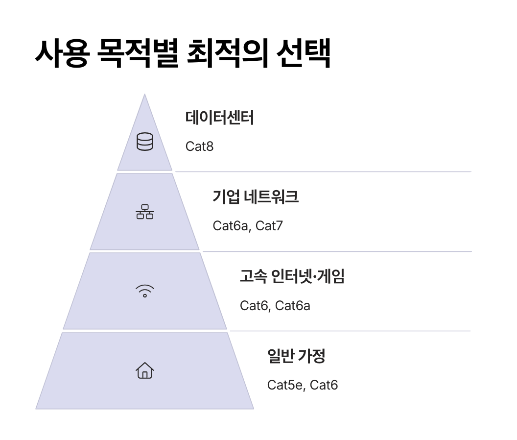 | Cat8 | 약 8,000원 이상 | ★★☆☆☆ (일반 사용자 불필요) |