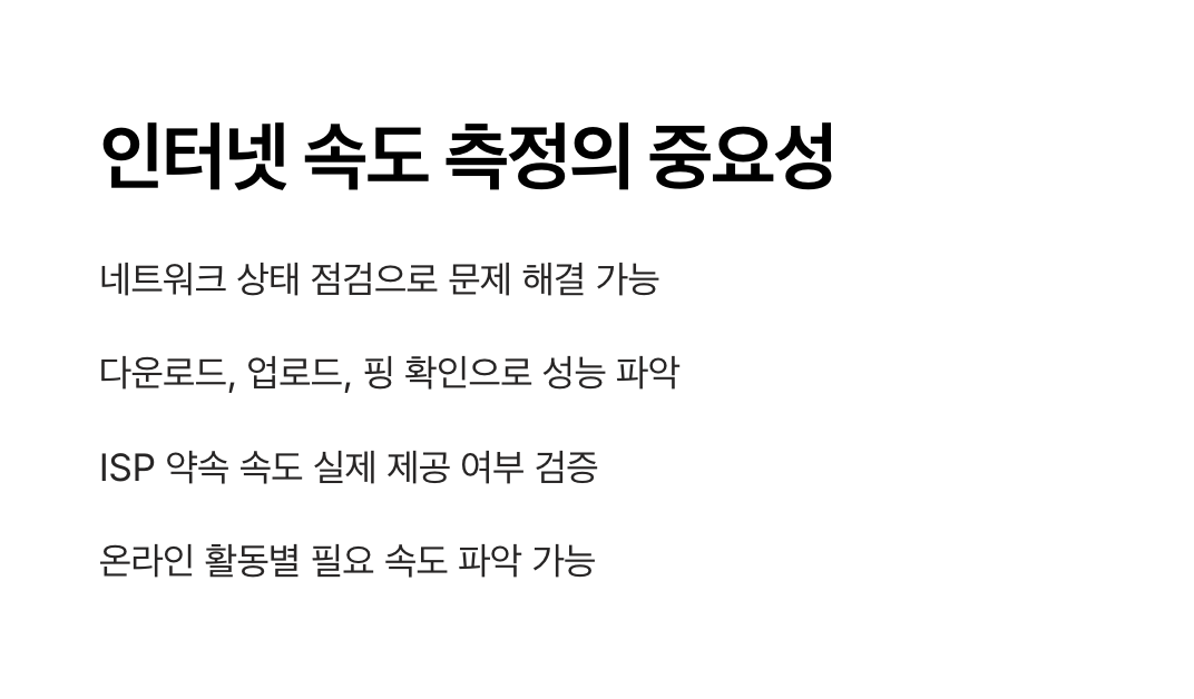 속도 측정은 단순한 테스트가 아니라 문제를 해결하고 최적의 네트워크 환경을 구축하는 첫 단계입니다.