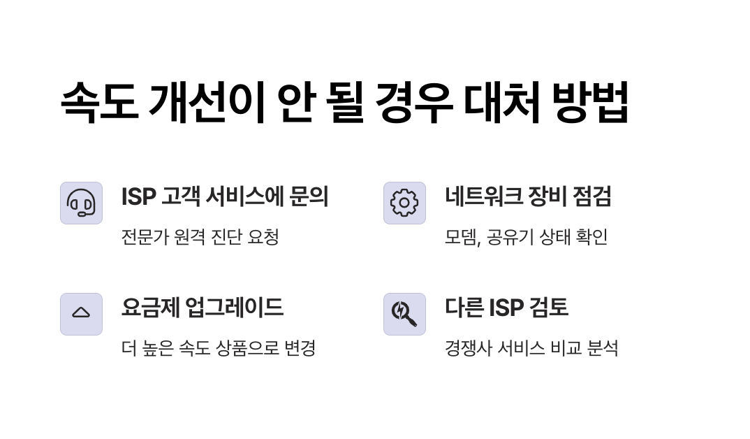 - ISP 변경 또는 요금제 업그레이드 검토하여 더 나은 인터넷 환경 구축
