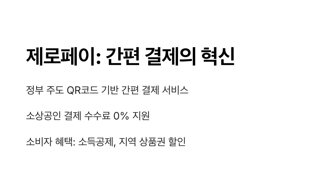 제로페이는 정부와 지자체가 주도하는 QR코드 기반의 모바일 간편 결제 서비스입니다. 2018년 도입 이후, 소상공인의 결제 수수료 부담을 줄이고 지역 경제를 활성화하기 위해 운영되고 있습니다. 소상공인은 결제 수수료 0%의 혜택을 받으며, 소비자는 소득공제, 지역 상품권 할인, 공공시설 할인 등의 혜택을 누릴 수 있습니다.