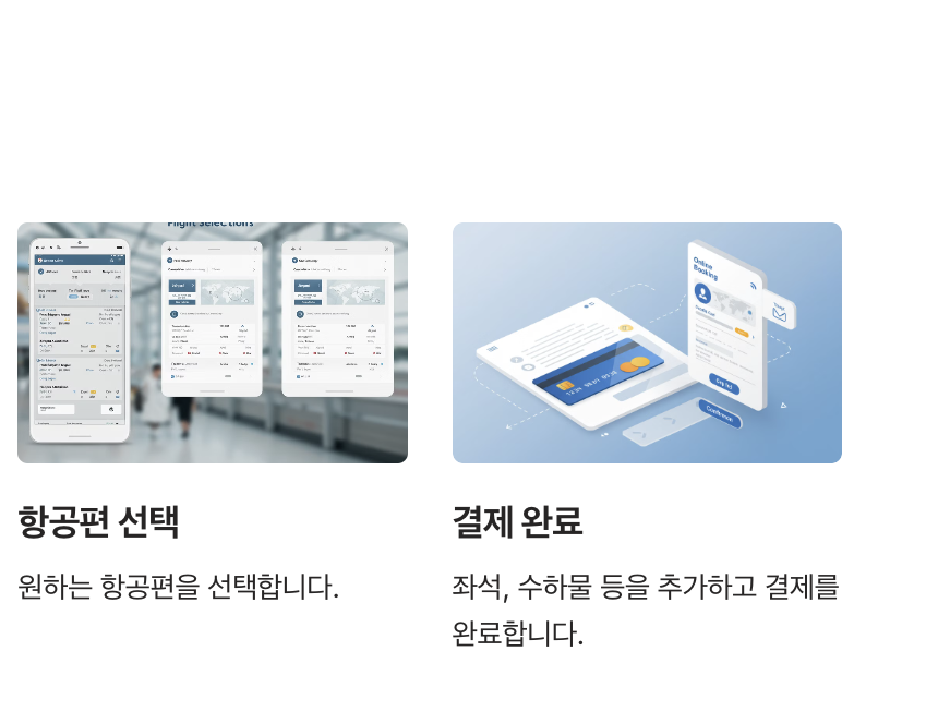 - 항공편 선택 시 출발 시간, 소요 시간, 요금을 비교하며 최적의 항공편을 찾으세요.