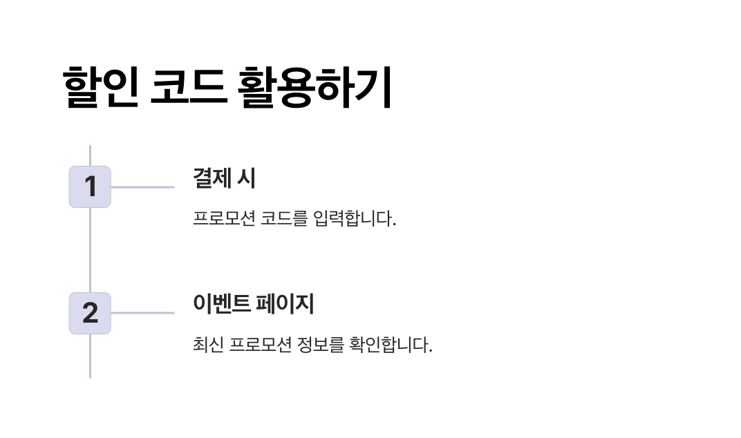 - 결제 단계에서 "프로모션 코드 입력" 란에 할인 코드를 입력합니다.