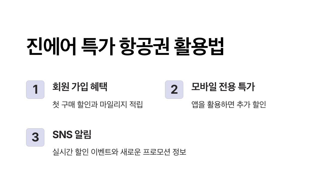 진에어 앱에서는 모바일 전용 특가 항공권을 제공하므로 앱을 활용하면 추가 할인을 받을 수 있습니다. - SNS 알림 활용