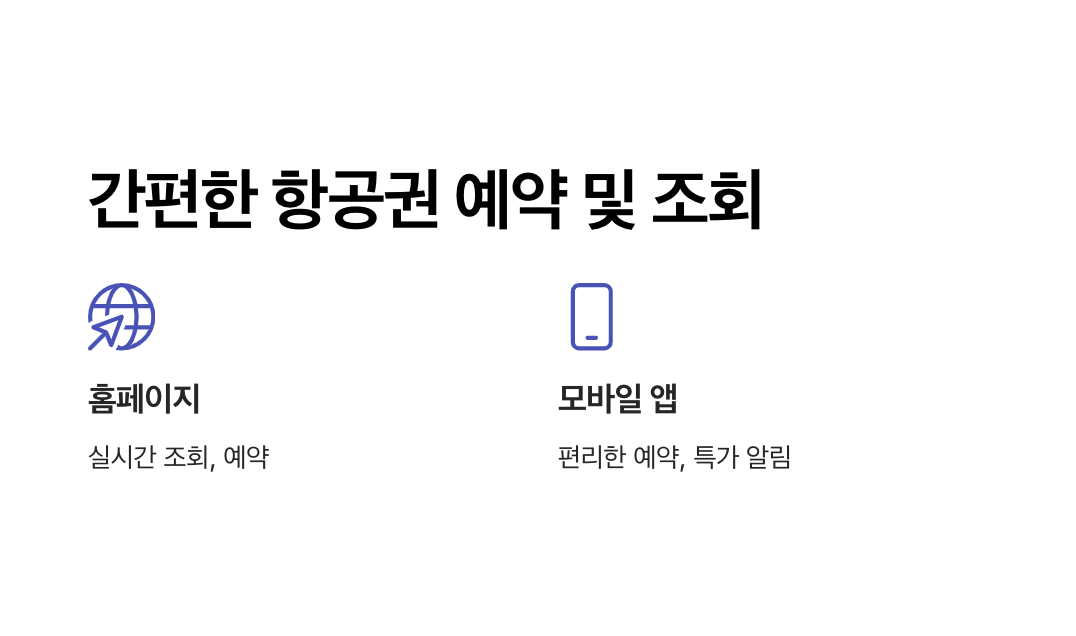 회원 가입 없이도 출발지와 도착지, 날짜를 입력해 실시간으로 항공편 정보를 확인할 수 있습니다. - 예약 및 프로모션 확인
