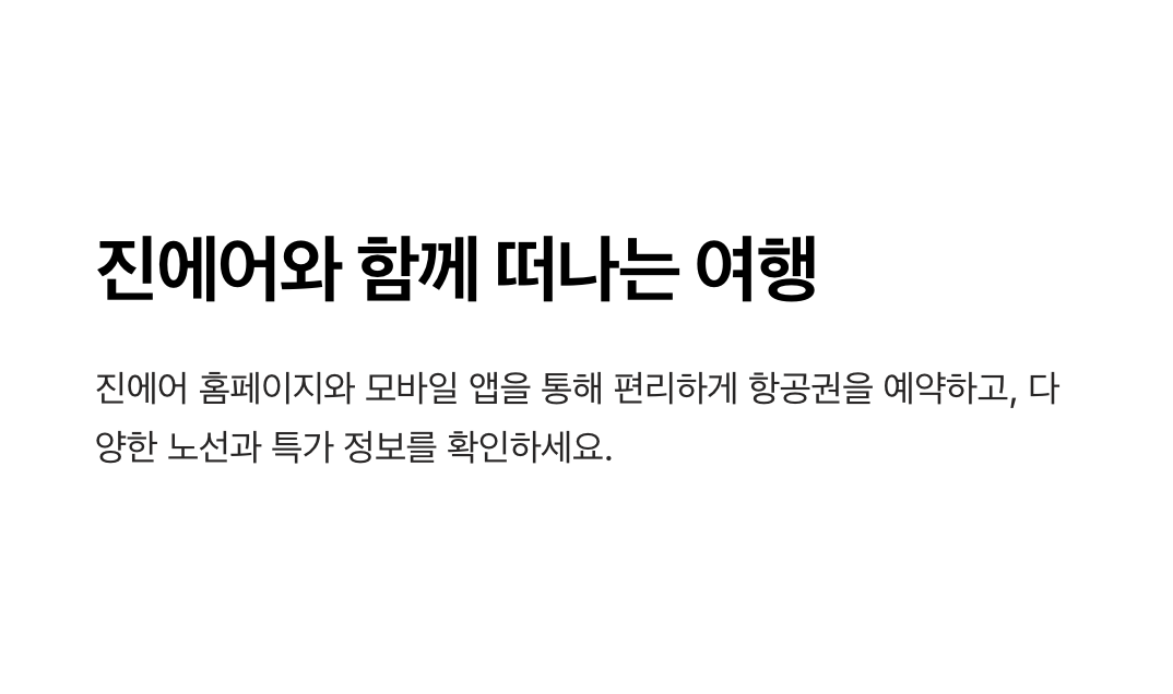 비성수기에는 다양한 소규모 프로모션이 진행됩니다. 진에어 홈페이지와 모바일 앱에서 실시간으로 할인 정보를 확인하세요. - 항공권 + 숙박 패키지 활용