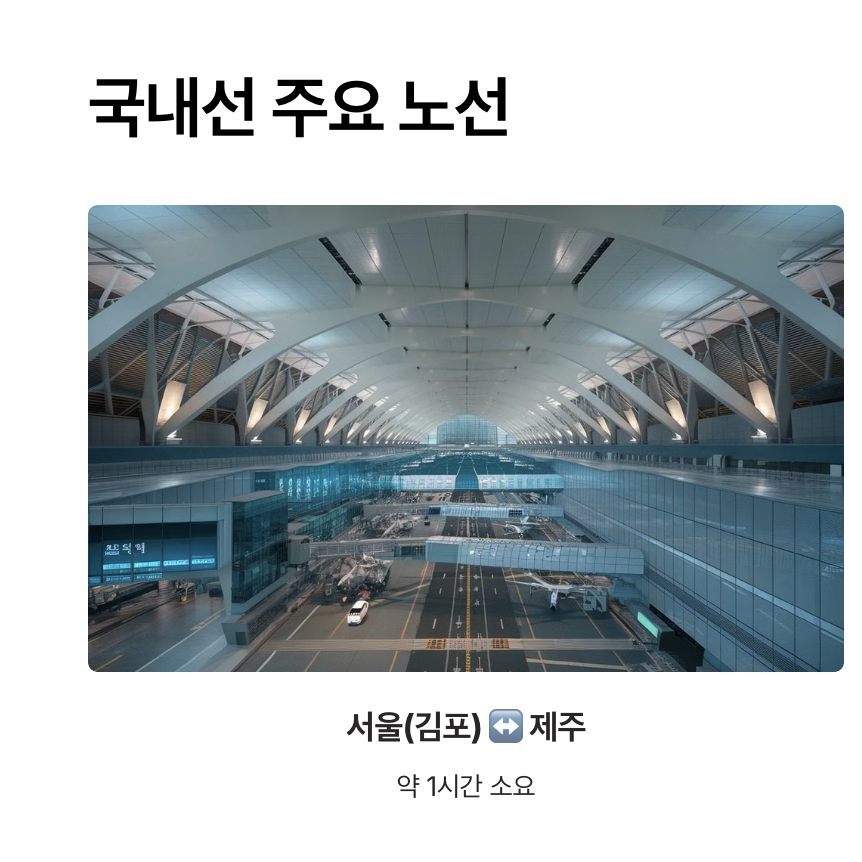 - 특징: 국내에서 가장 많이 이용되는 노선으로, 성수기에는 조기 예약이 필수입니다. 제주 여행을 계획 중이라면 항공권 예약 후 숙소와 렌터카도 미리 준비하세요.