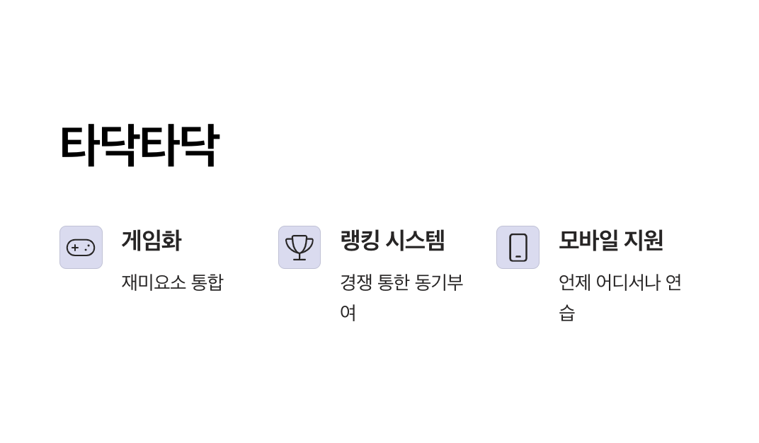 | 타닥타닥 | ✅ 있음 | ✅ 강함 | △ 부분 적합 | ✅ 가능 | 학생, 일반인, 재미 중시 |