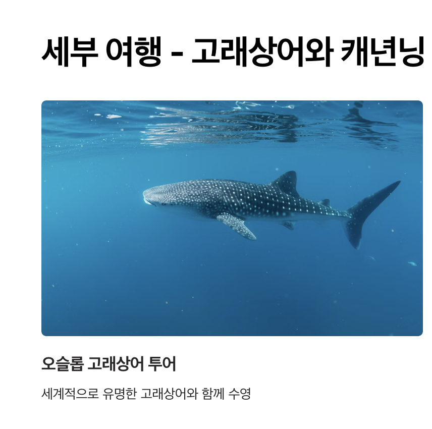 세부는 필리핀 중부 지역을 대표하는 여행지로, 다이빙과 자연 탐험을 즐기기에 최적의 장소입니다.