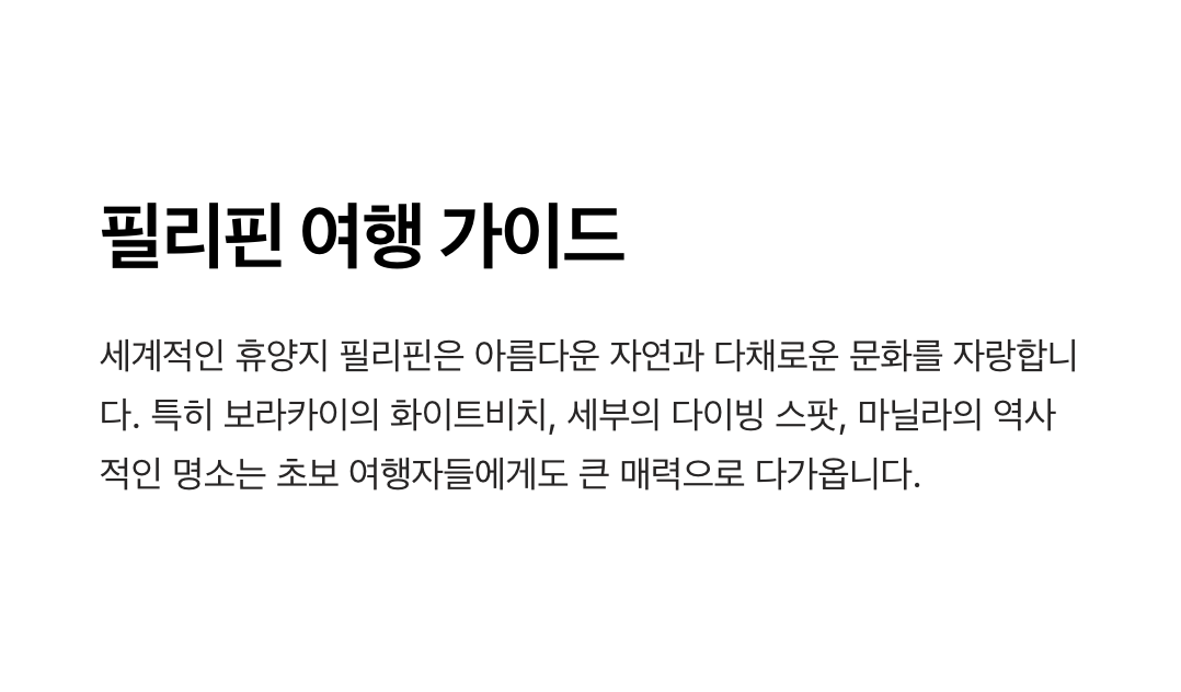 필리핀은 세계적으로 사랑받는 여행지로, 아름다운 자연경관, 다양한 액티비티, 그리고 독특한 음식 문화로 많은 관광객을 매료시킵니다. 특히 보라카이의 화이트비치, 세부의 다이빙 스팟, 마닐라의 역사적인 명소는 초보 여행자들에게도 큰 매력으로 다가옵니다.