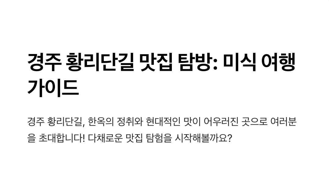 이번 여행에서 경주 황리단길의 맛과 멋을 함께 경험해 보시길 바랍니다.