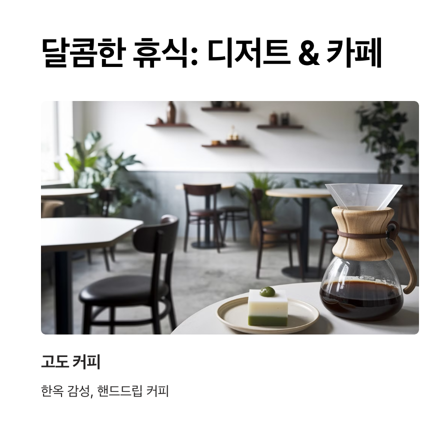 - 대표 메뉴: 핸드드립 커피, 수제 디저트