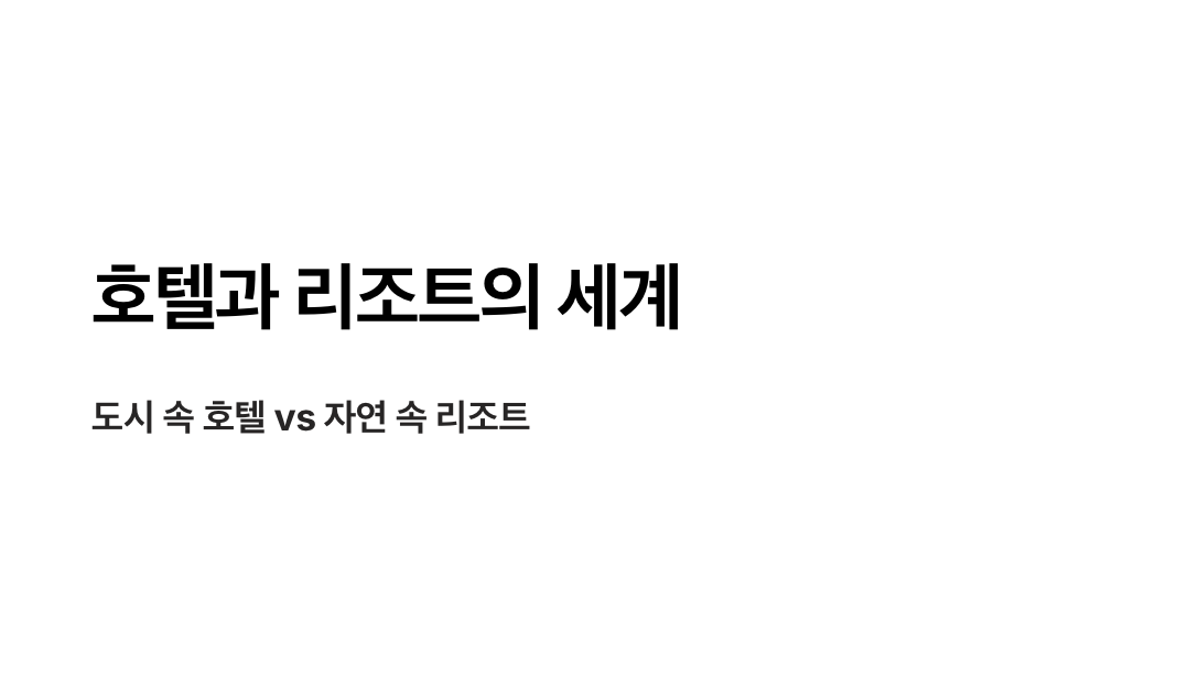 호텔과 리조트는 겉보기에는 모두 숙소지만, 그 목적과 위치, 분위기, 가격, 제공되는 서비스까지 꽤 많은 차이가 있습니다.