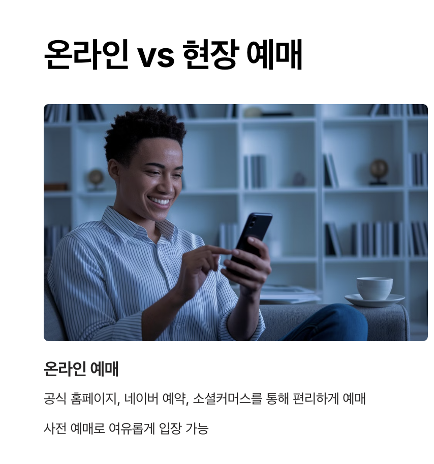| 구매 방식 | 온라인 예매 | 현장 구매 |