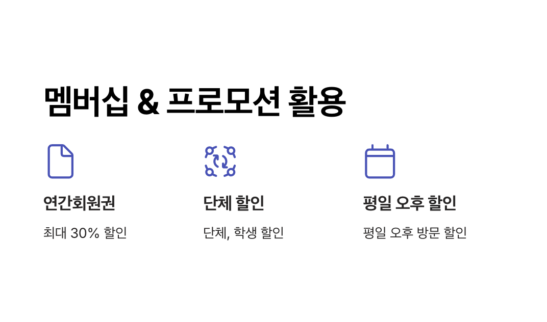 - 학생/어린이 할인: 학생증이나 신분증을 지참한 경우 할인된 가격으로 입장 가능합니다.