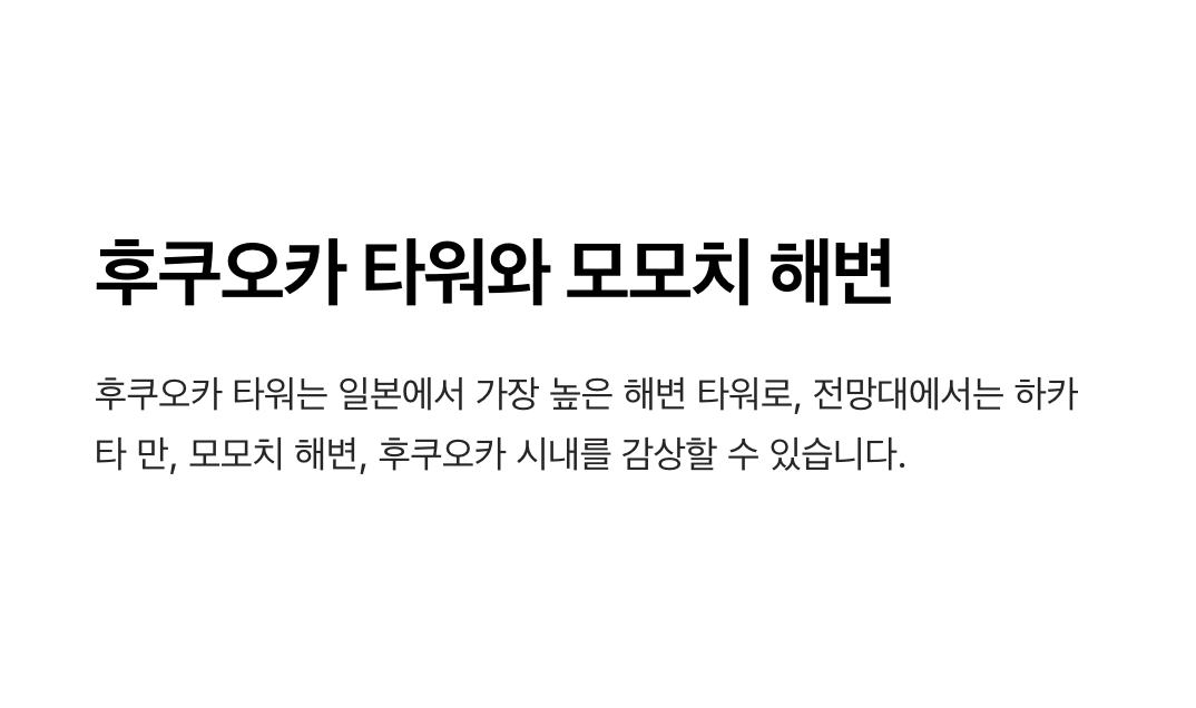 후쿠오카 타워와 모모치 해변은 후쿠오카의 도시적인 매력과 자연의 아름다움을 동시에 느낄 수 있는 특별한 장소들입니다. 타워 전망대에서 바라보는 파노라마 뷰와 모모치 해변의 여유로운 분위기는 모든 여행자에게 감동을 선사할 것입니다.
