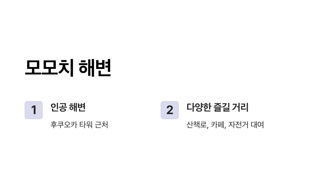 2. 모모치 해변: 여유로운 시간을 보내기 좋은 인공 해변