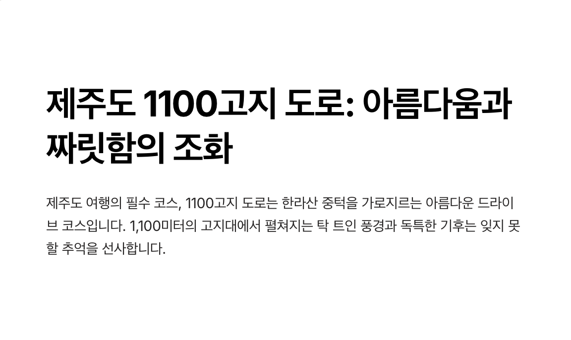 제주도의 1100고지 도로는 아름다운 풍경과 독특한 기후를 경험할 수 있는 장소로, 제주도 여행 시 놓칠 수 없는 명소 중 하나입니다. 이 도로는 한라산 중턱을 가로지르는 도로로, 평균 해발 1,100미터에 위치해 있으며, 생생한 자연환경과 드넓은 제주도의 전경을 눈으로 즐길 수 있는 최고의 드라이브 코스입니다.