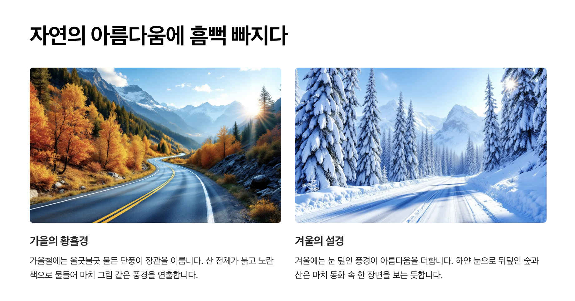 이곳은 특히 가을철 단풍과 겨울철 눈 덮인 풍경으로 많은 관광객과 사진작가의 사랑을 받고 있습니다. 눈이 자주 내리는 지역이기 때문에, 여유롭고 조심스럽게 운전하는 것이 좋습니다. 또한 도로 상황을 수시로 확인하여 안전하게 이동할 수 있습니다.