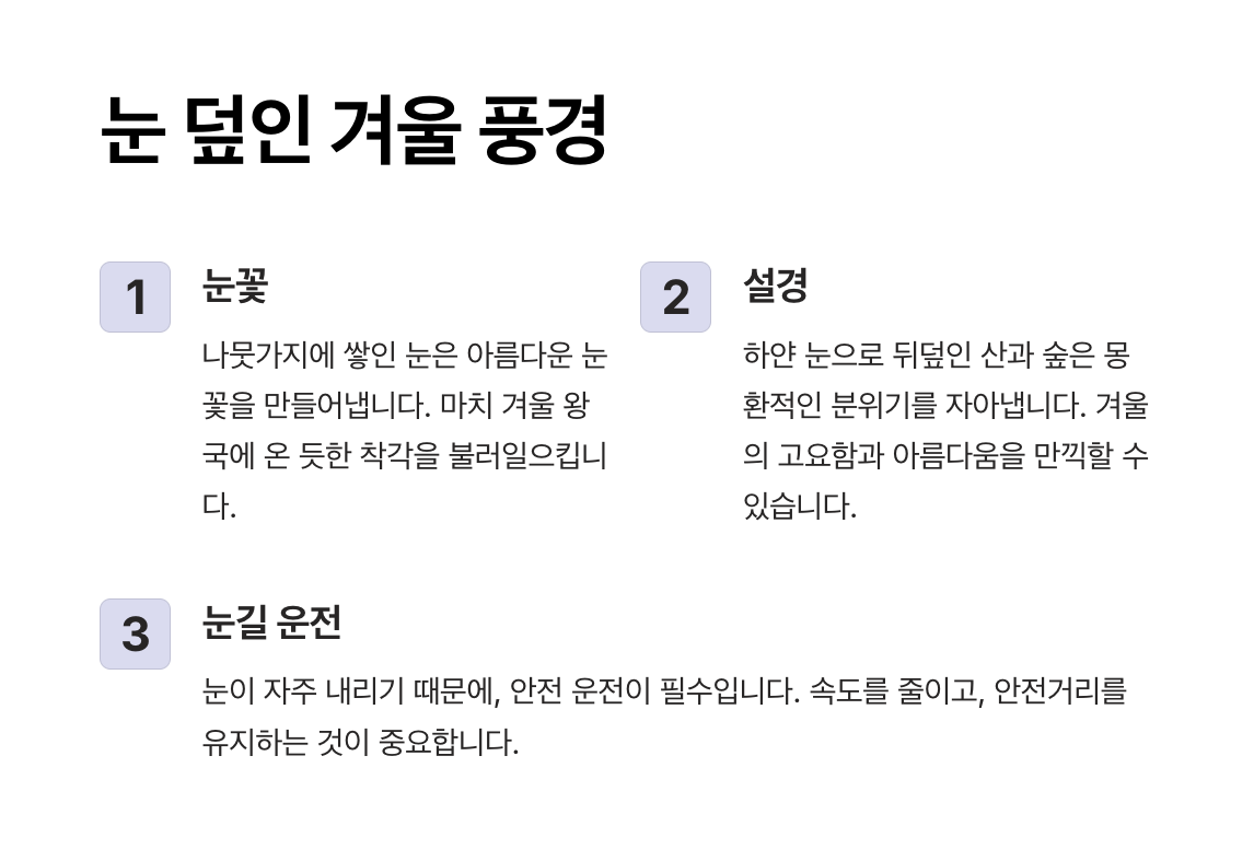 📌 CHECK POINT: 겨울철에는 눈이 많이 내리는 탓에 1100고지 도로가 일시적으로 통제될 수 있습니다. 방문 전, 도로 정보를 확인하고 필요한 경우 안전 장비를 준비하세요.