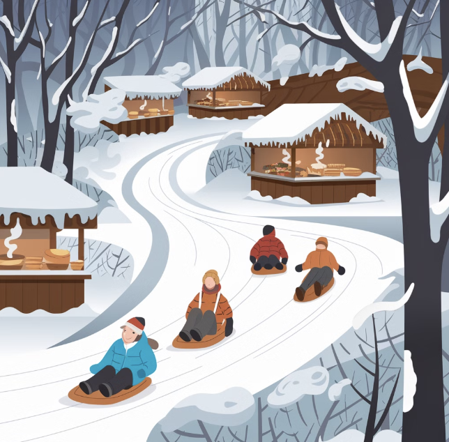 - 전통 눈썰매: 대규모 눈썰매장은 가족 단위 방문객에게 특히 인기. 자연 경사면을 활용해 짜릿한 체험 제공.