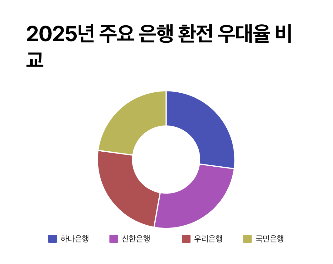 - 하나은행이 가장 낮은 환전 수수료 적용 가능 (95% 우대 시)