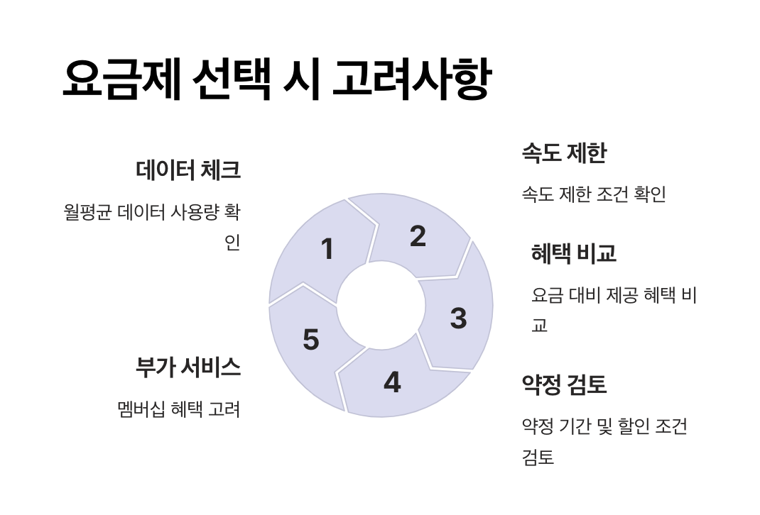 - 데이터 사용량: 월평균 데이터 사용량을 기준으로 적절한 요금제를 선택